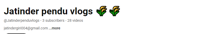 Jatinder pendu vlogs3- Subscribers • 28 Videos • India • HindiSponsorship Price: 500 INR Youtube Channel: @Jatinderpenduvlogs Farming Channel... Read More |
